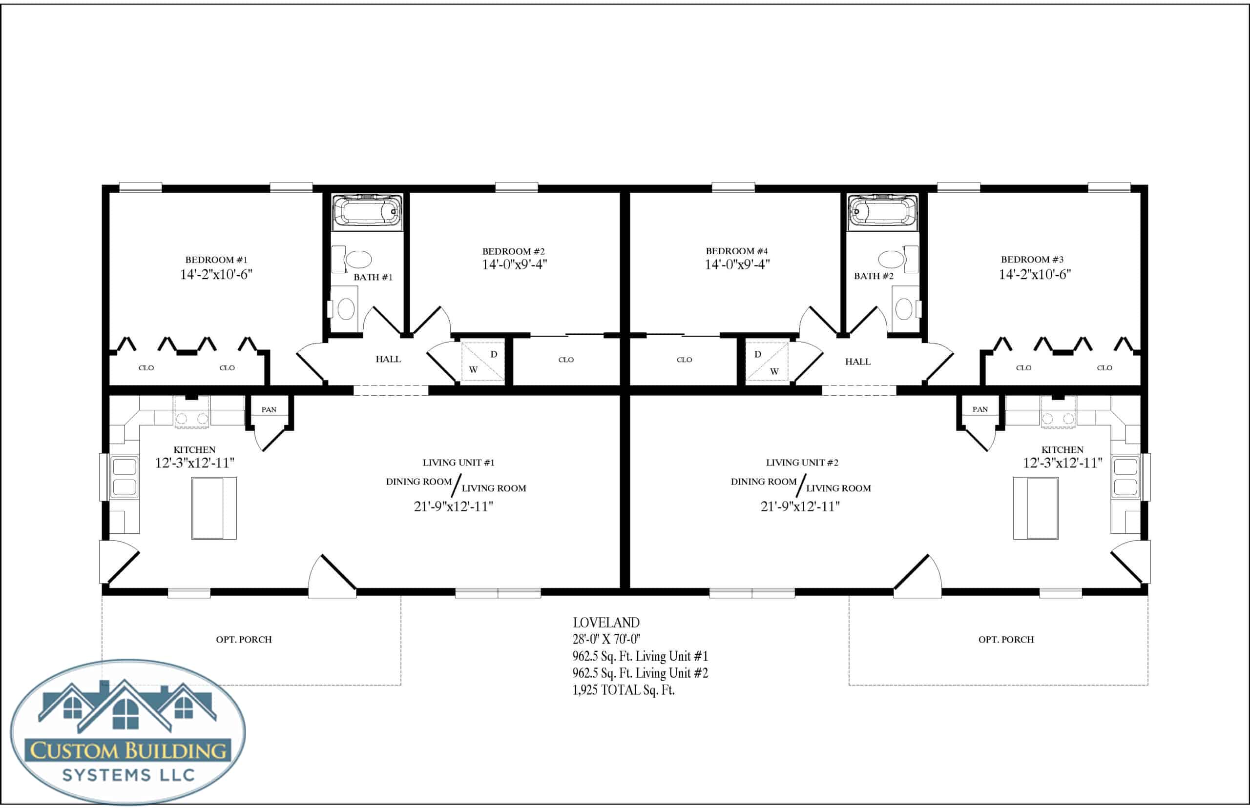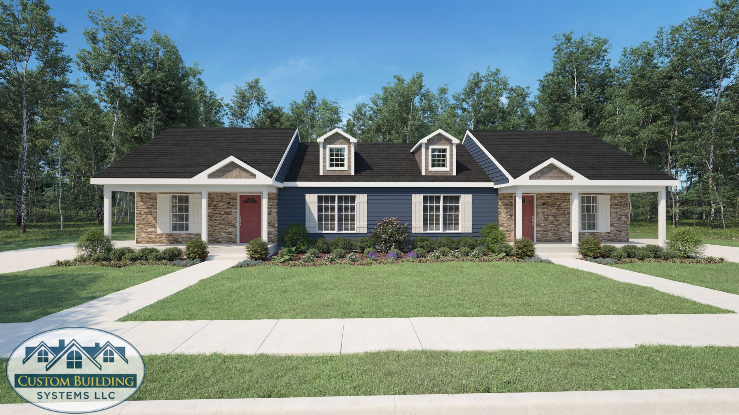 The end unit of a 6 unit multi-family modular home. This one story unit has 2 bedrooms, 2 bathrooms, full laundry room off the attached