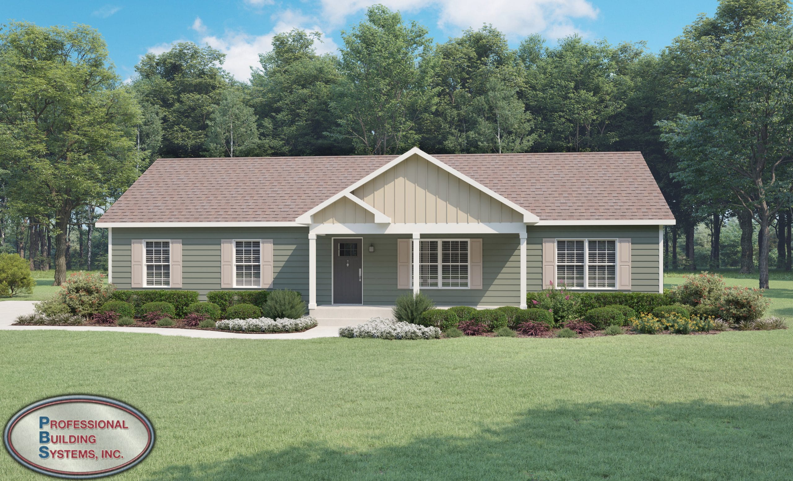 The end unit of a 6 unit multi-family modular home. This one story unit has 2 bedrooms, 2 bathrooms, full laundry room off the attached