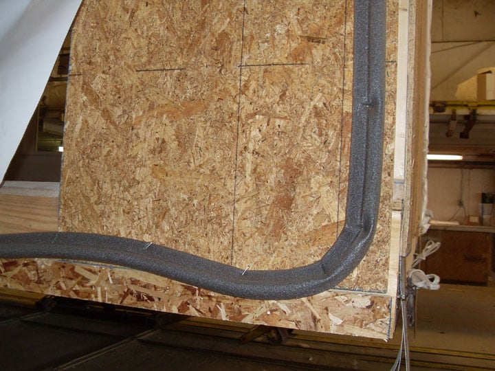A foam gasket material is installed on one side of each marriage wall to ensure an air tight seal when erecting the units on the foundation.