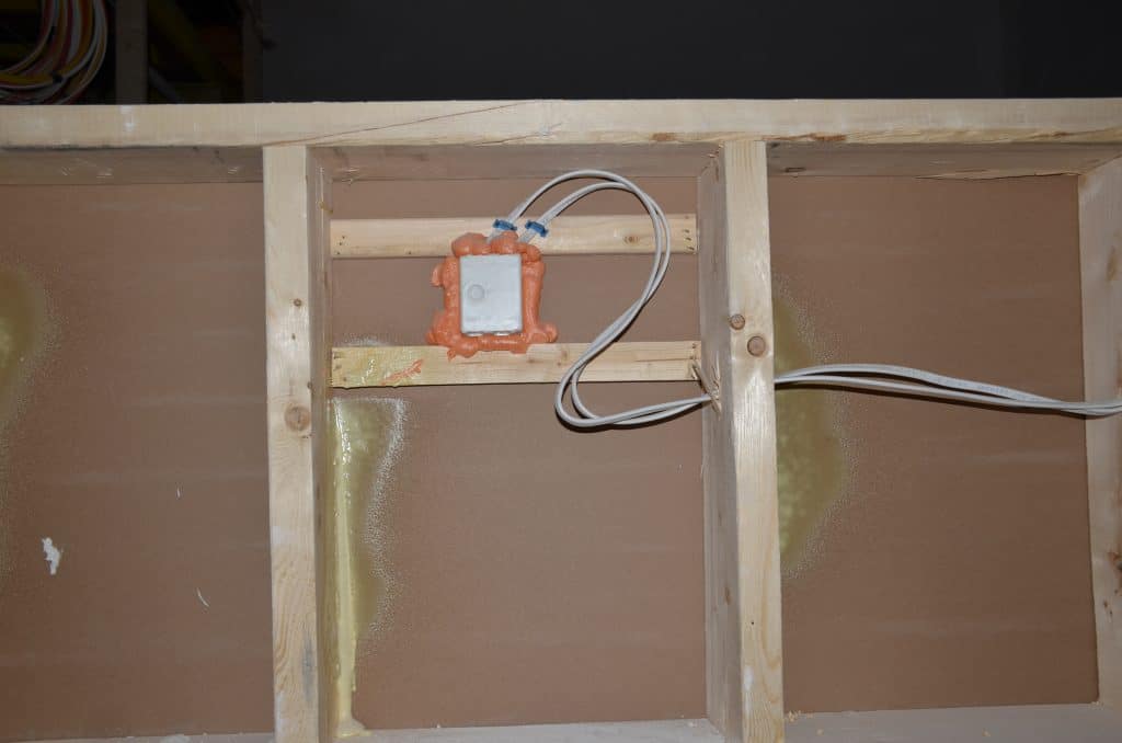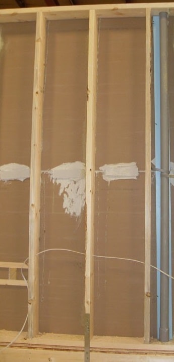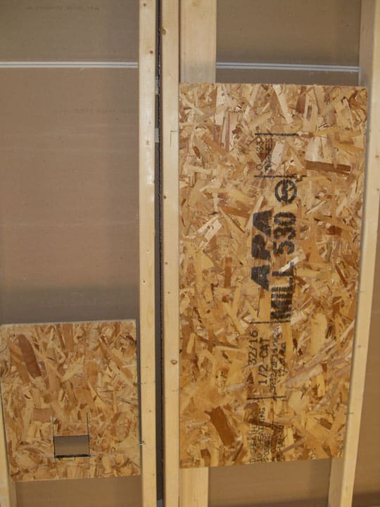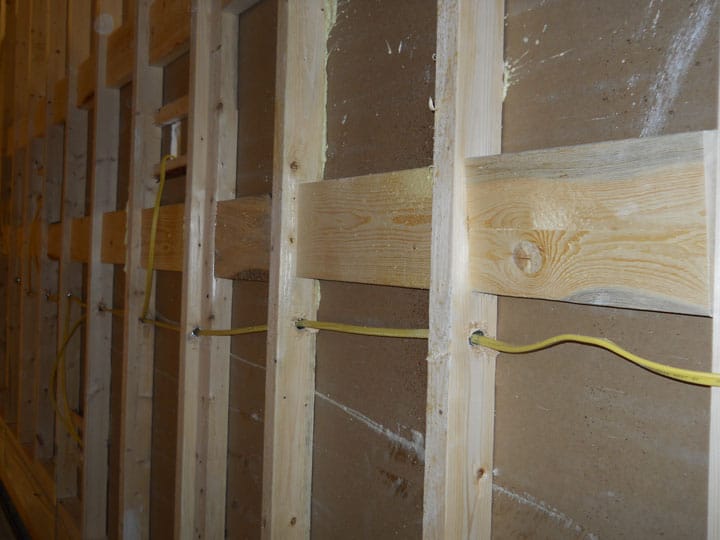 Additional blocking is installed behind the drywall for secure fastening of wall and base cabinets.